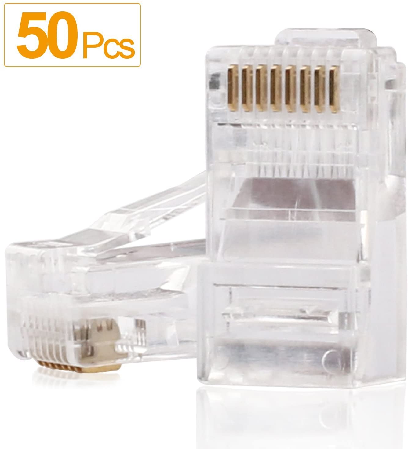 RJ45 Ends, Crimp Connectors 8P8C UTP Network Plug for CAT5 CAT5E CAT6 50PCS